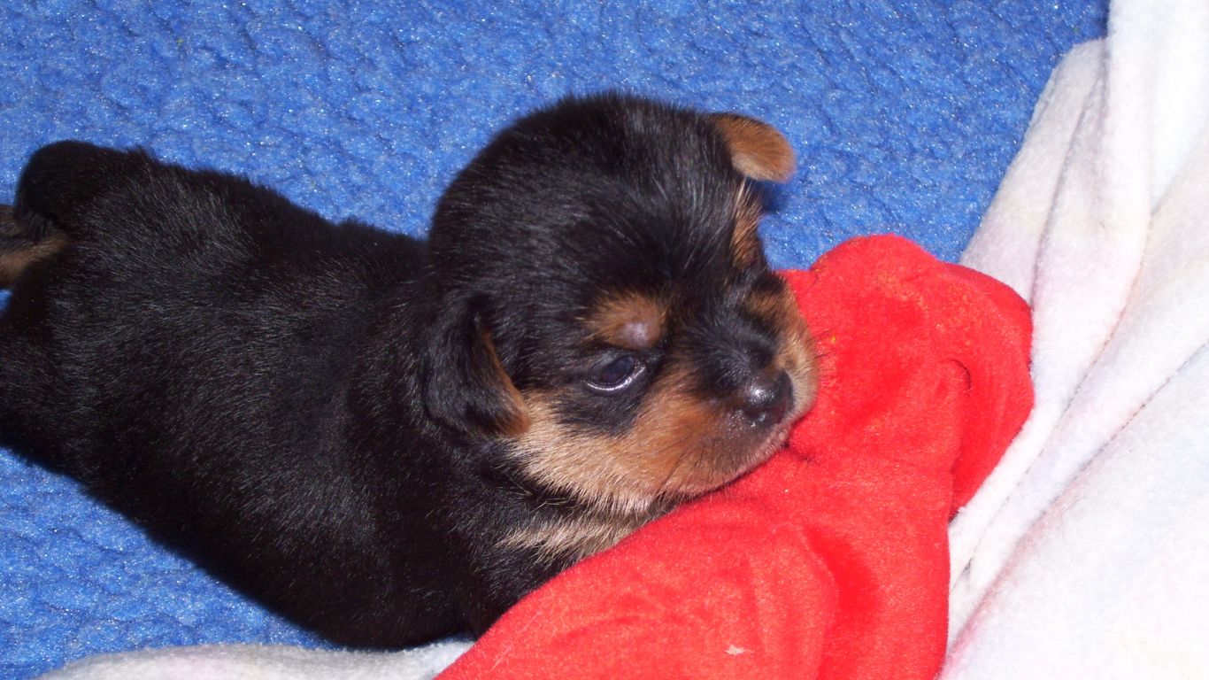 Miracle’s birth was not easy. I bred her mother, Cali, and owned her father as well. When labor began, it was too long for Cali, so we opted to have a c-section to make sure the two pups survived. We got to the vet at around 3:00, and Cali was immediately prepped for surgery. Then I waited. And waited some more. Finally, a vet tech came out to say that a boy pup had been born, breathing, but that breathing stopped shortly after he was born. They tried valiantly to save him, but it was not to be.